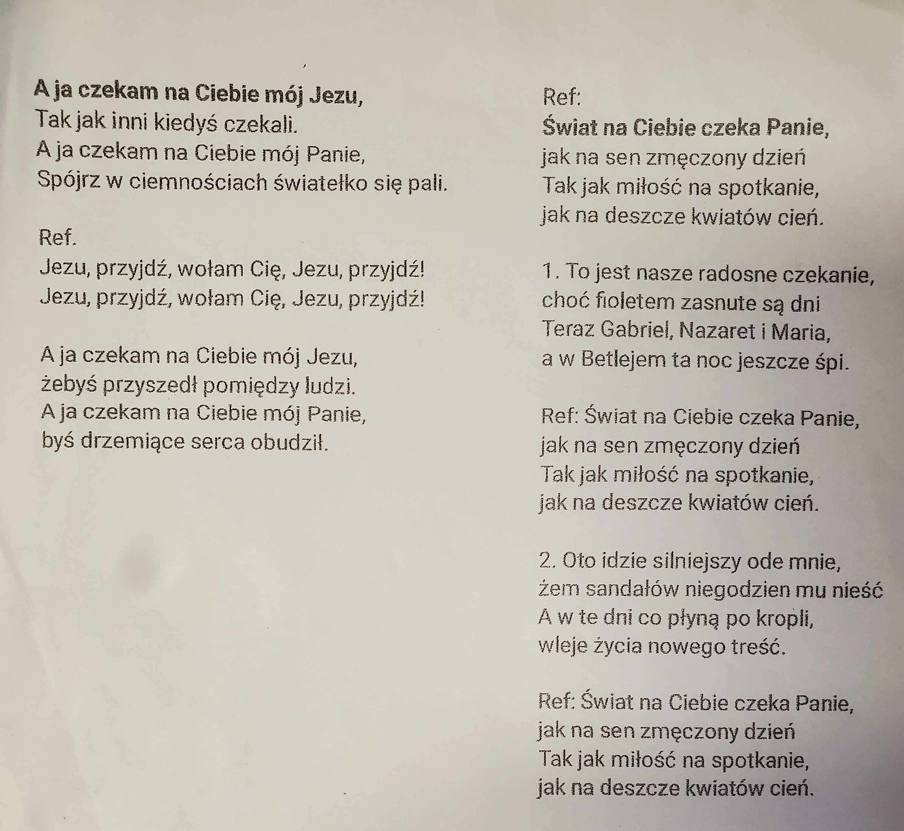 1. religia: "Wierzę w Boga" na pamięć;